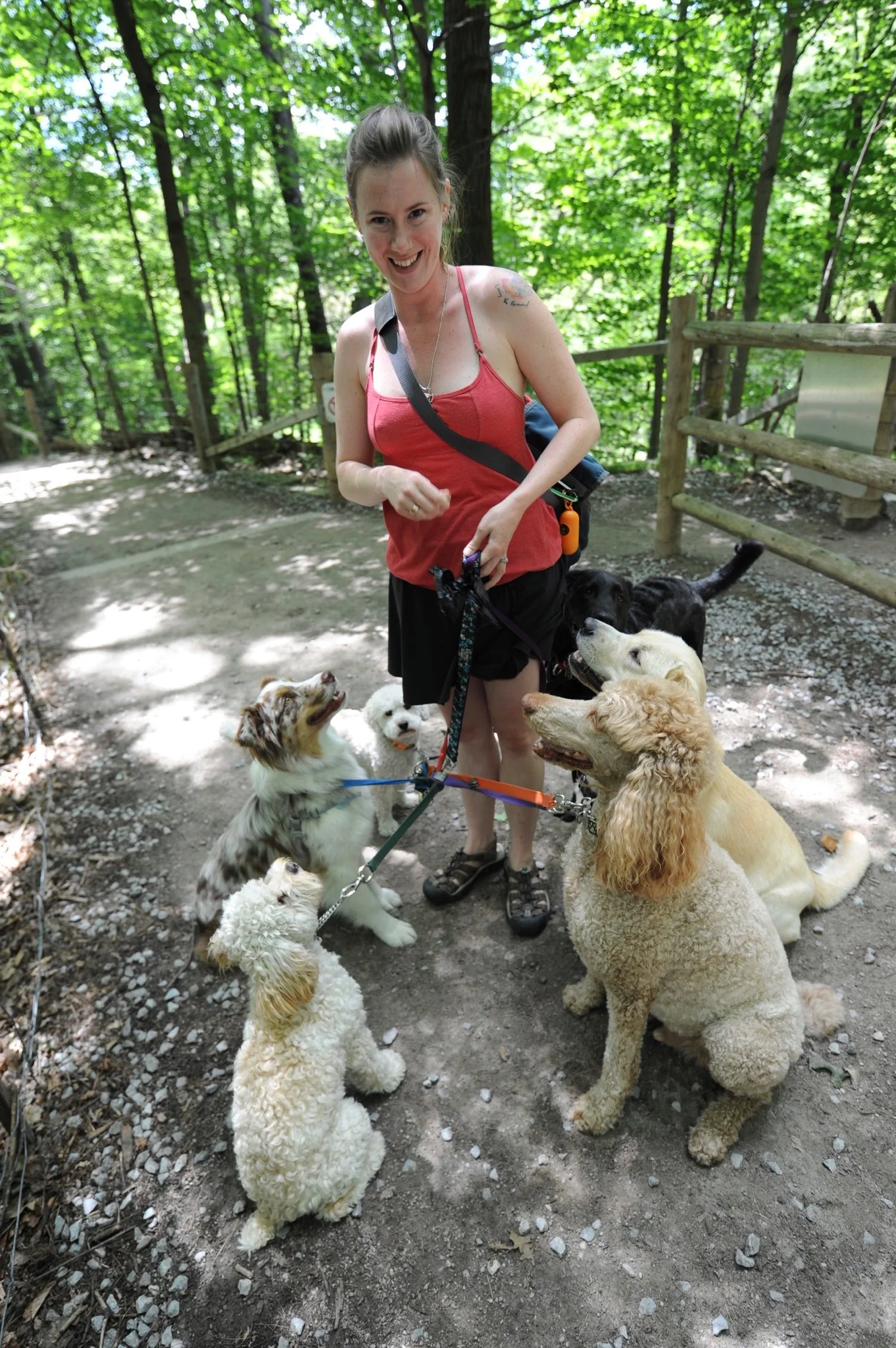 Her career working with animals began with wrangling in theatre, film and television. Realizing that she would be even happier working with animals daily rather than on contract, she started exploring dog walking and training as a career.